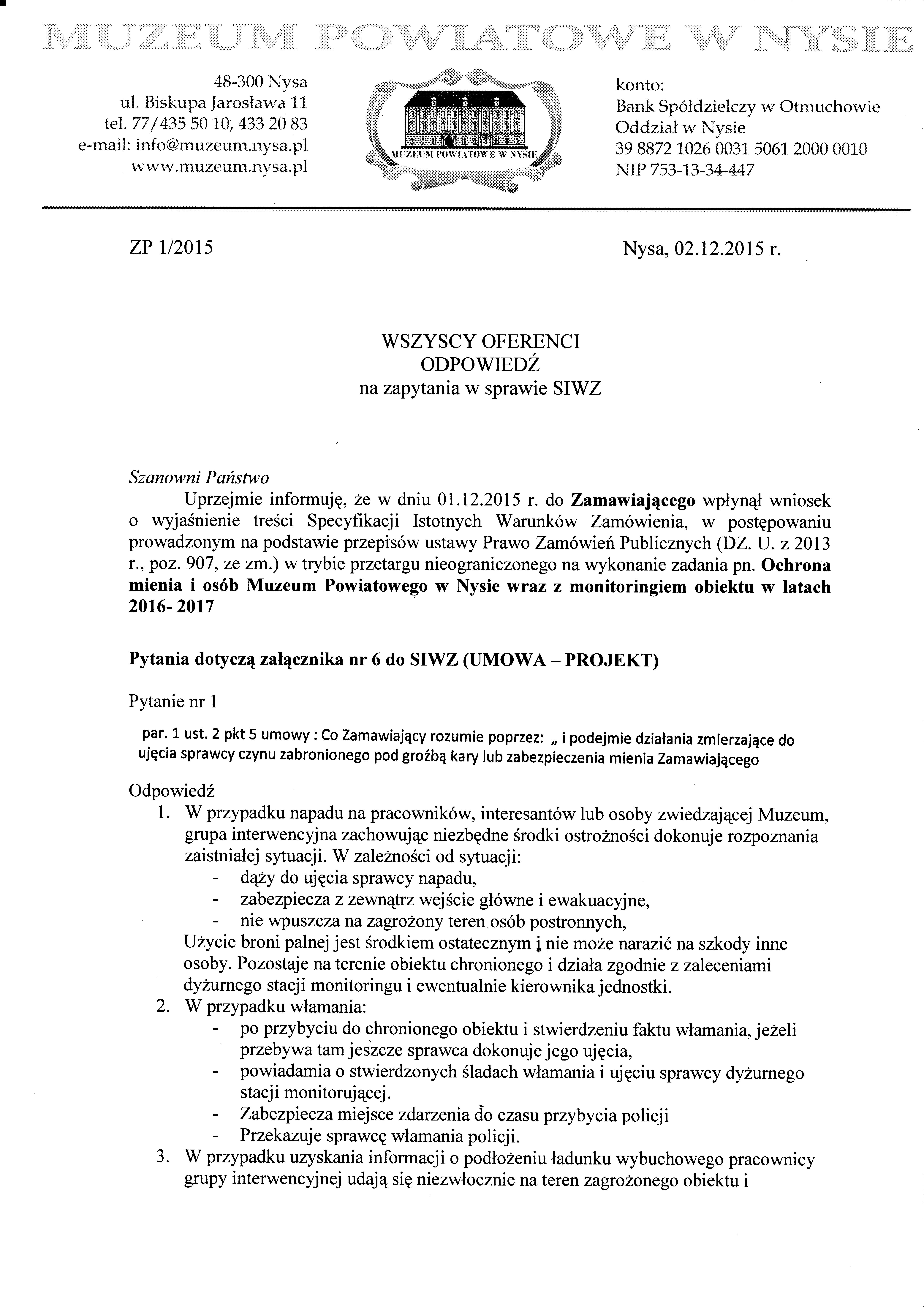 WYJAŚNIENIA !!! Ochrona mienia i osób Muzeum Powiatowego w Nysie wraz z monitoringiem obiektu w latach 2016- 2017-1